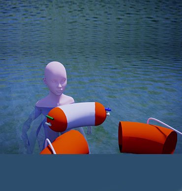 4 beyaz parça ana üniteden ayrıldıktan sonra kazazedenin boynuna takılıp otomatik olarak şişerek kafasının su üzerinde kalmasını sağlar. Ayrıca ikaz lambası, düdüğü ve manuel şişirme aparatı bulunabilir. Böylece kazazede boğulmadan kurtarılmayı bekleyebilir. Ana üniteye bağlı hayat ipi (lifeline) sayesinde, ana üniteye tutunan birden fazla kişi çekilerek tekneye geri alınabilir.